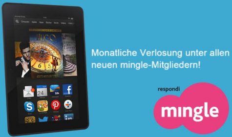 Unter allen mingle-Mitgliedern wird monatlich ein Kindle Fire HD eBook-Reader verlost. Wie kannst du an dem Wettbewerb von mingle teilnehmen? Melde dich einfach gratis an und schon hüpfst du in den Lostopf, um an der monatlichen Verlosung teilzunehmen.